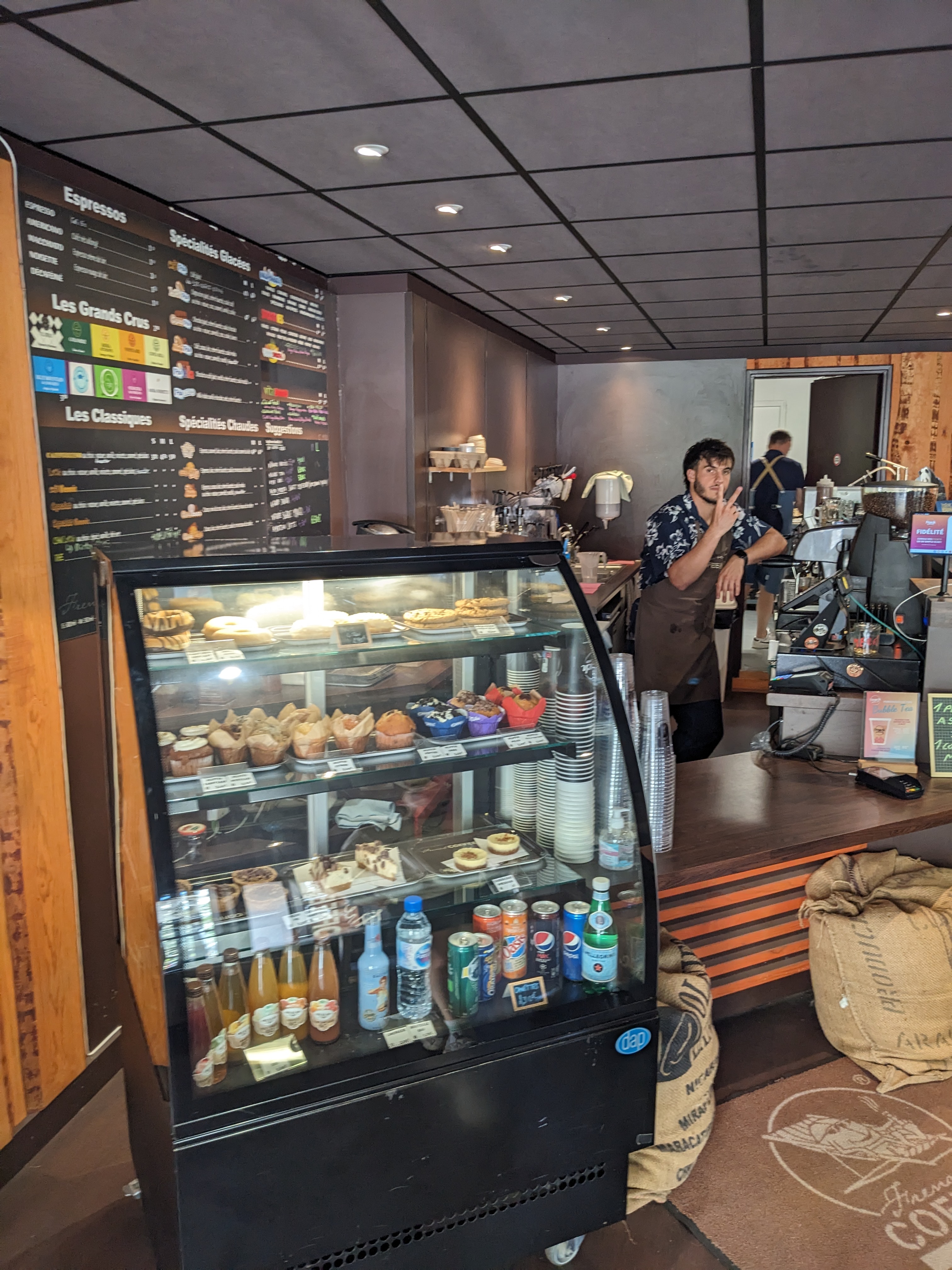 Tres bonnes boissons et large choix Les prix sont élevés mais il y a la qualité. C’est un caffe luxueux avec une bonne ambiance. On a pris un latte au lait d’avoine, le supplément d’1€ pour le lait végétal est vraiment trop élevé à mon goût, mais le café était très bon
